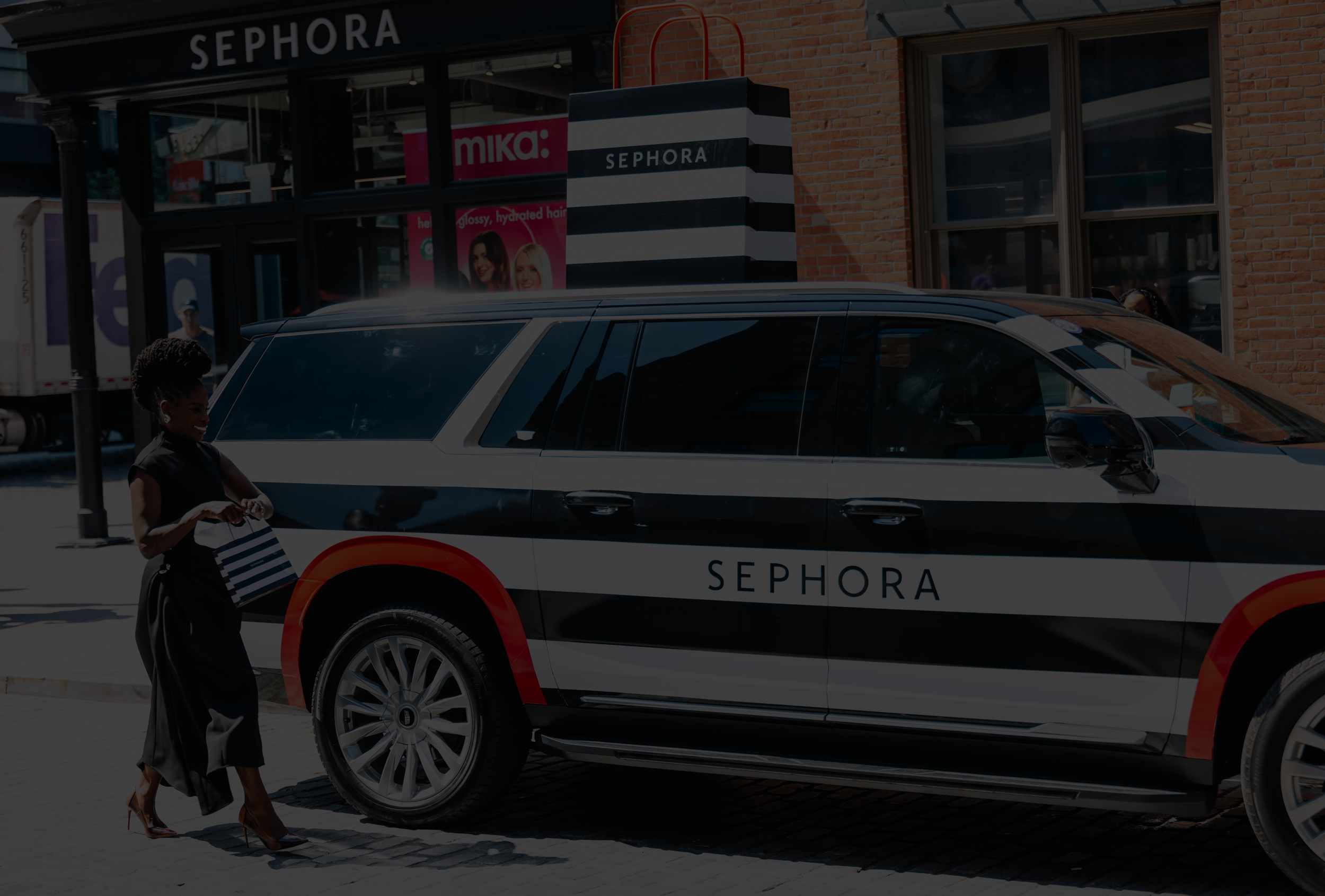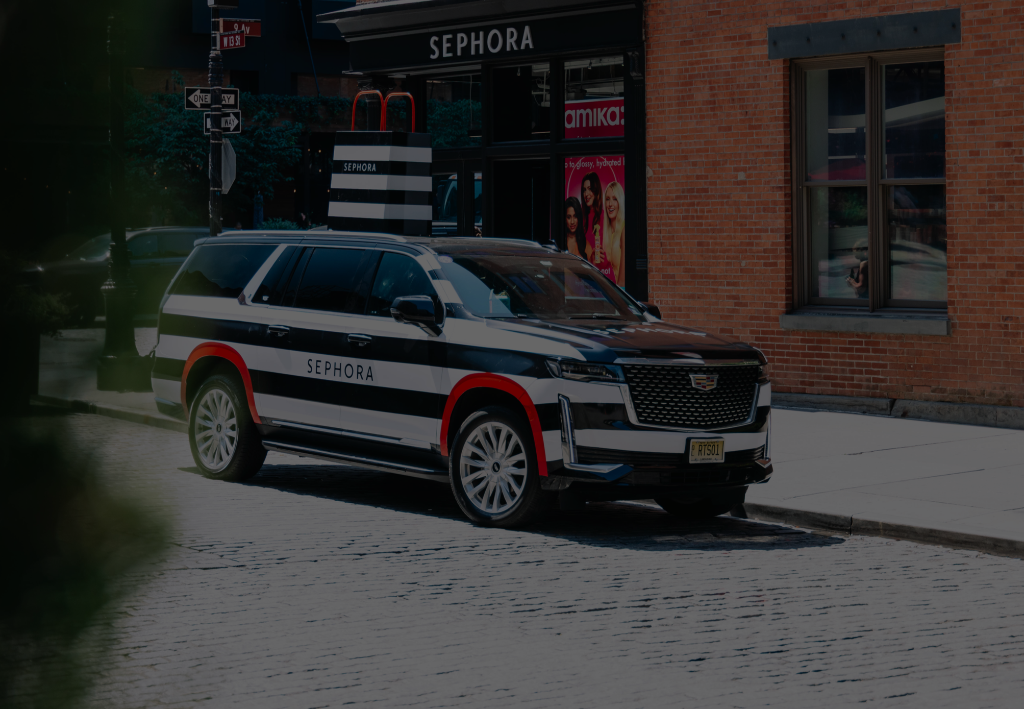 The brands took over the streets of five major cities with a fleet of cars wrapped in Sephora’s iconic black and